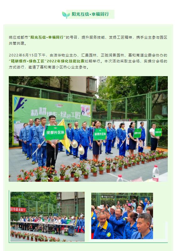 響應(yīng)成都市“陽光互信·幸福同行”的號召,提升服務(wù)技能、發(fā)揚(yáng)工匠精神,攜手業(yè)主參與園區(qū)共管共建。